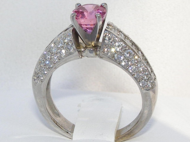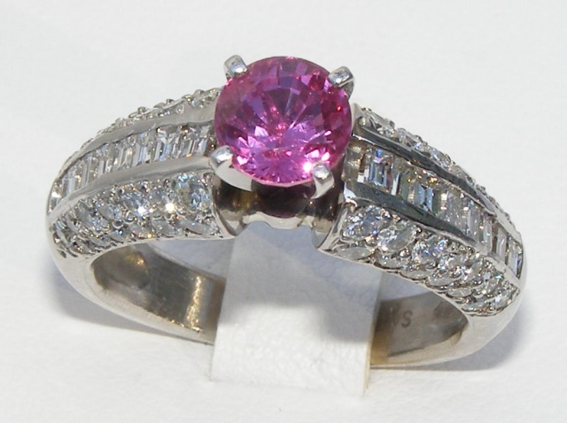 This is the quintessential text book rich pink Ceylon sapphire. Shocking pure pink void of any secondary hues this spectacular round brilliant sapphire has striking beauty and blinding brilliance.